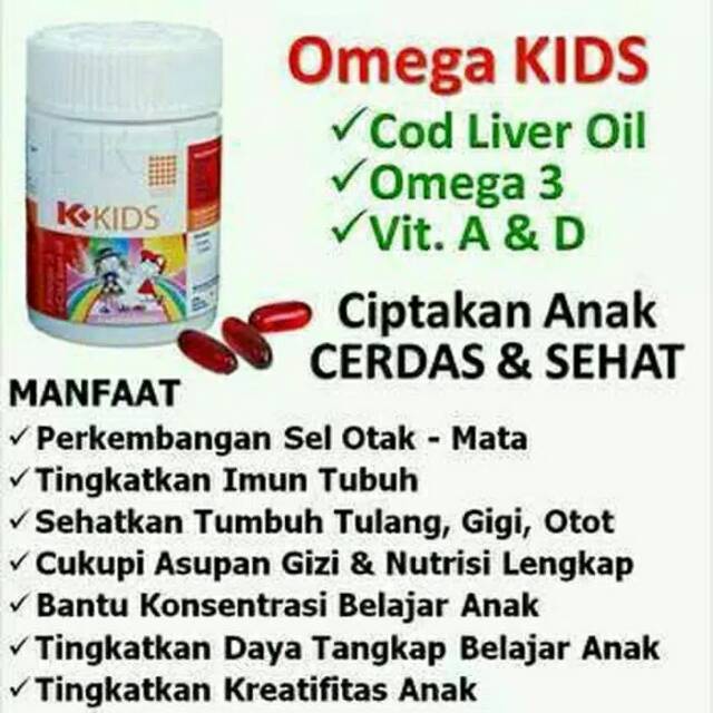 K KIDS OMEGA KIDS K LINK OMEGA 3 MINYAK IKAN KOD + VITAMIN A & D SUPLEMEN ANAK