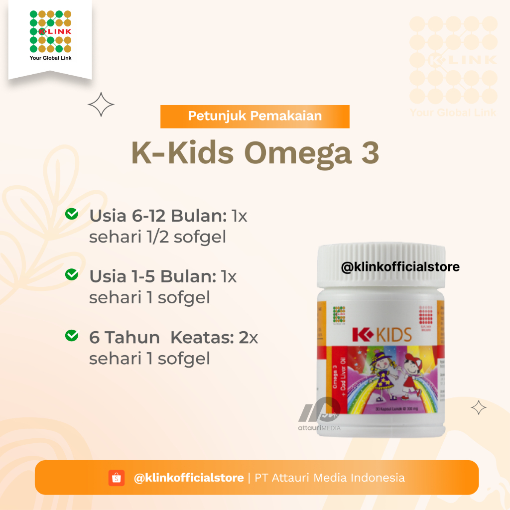 K-KIDS K-Link Original BPOM (1 Botol isi 30 Softgel) Omega Kids Minyak Ikan Anak Original K-Link