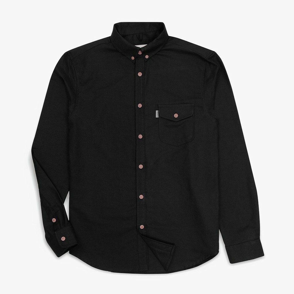 Baju Kemeja Pria Lengan Panjang Hitam Highty Black Plain Cotton Long Sleeve Shirt Kemeja Kancing Bawah Kemeja Pria Katun