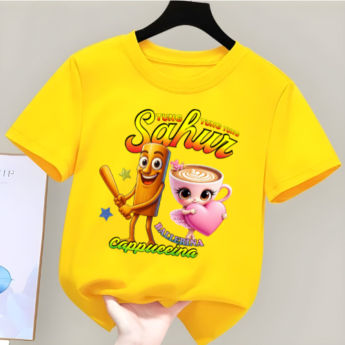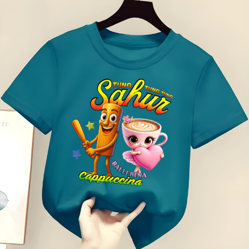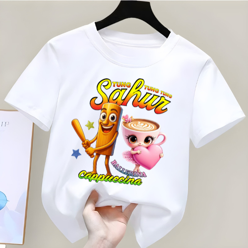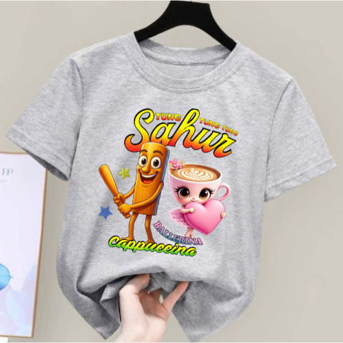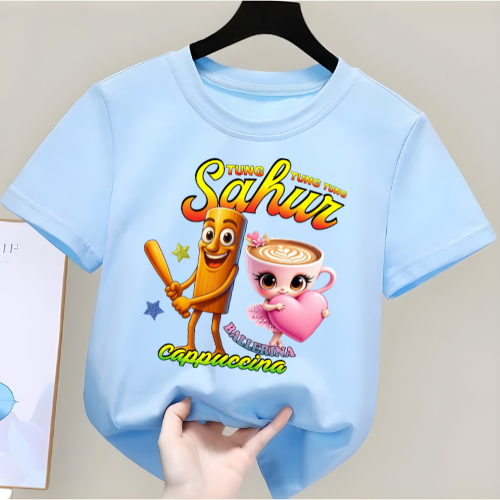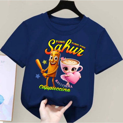 Kaos Anak Unisex Usia 2-12 Tahun TungTung Sahur Ballerina Atasan Oblong Distro Lengan Pendek