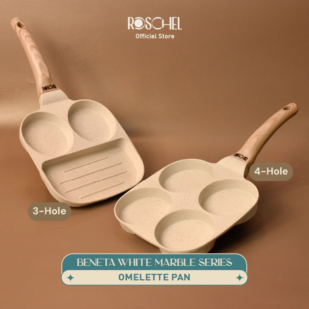 ROSCHEL BENETA WHITE MARBLE COATING NONSTICK OMELETTE PAN 3 4 LUBANG TAMAGO EGG PAN PANCI WAJAN PENGGORENGAN TELUR SOSIS WAFFLE PANCAKE 3IN1 ANTI LENGKET PEMBUAT SARAPAN CETAKAN TELOR DADAR