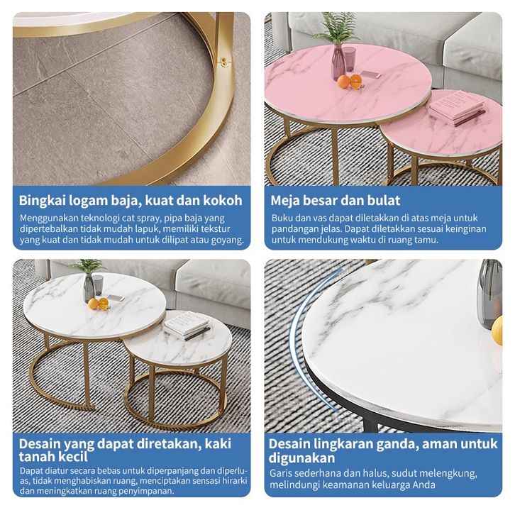 TERBARU Meja Tamu Meja Kopi Coffee Table Motif Marble Meja Kopi 2-In-1 Minimalis Sederhana Rotundity Dua