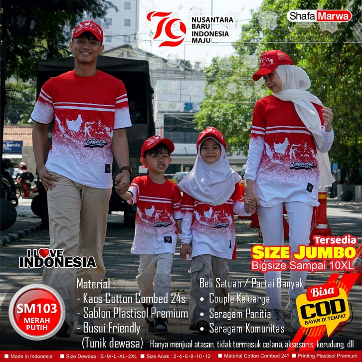 Shafamarwa Baju Merah Putih Agustusan - Kaos Seragam Couple Edisi Kemerdekaan 17 Agustus SM103