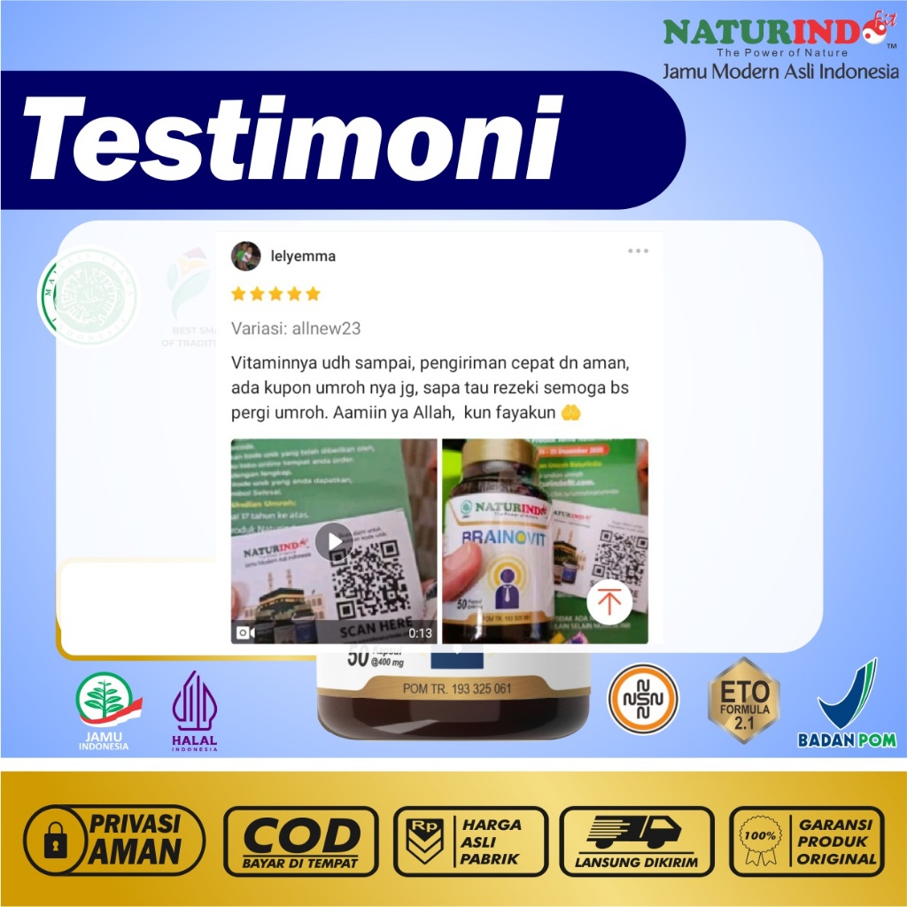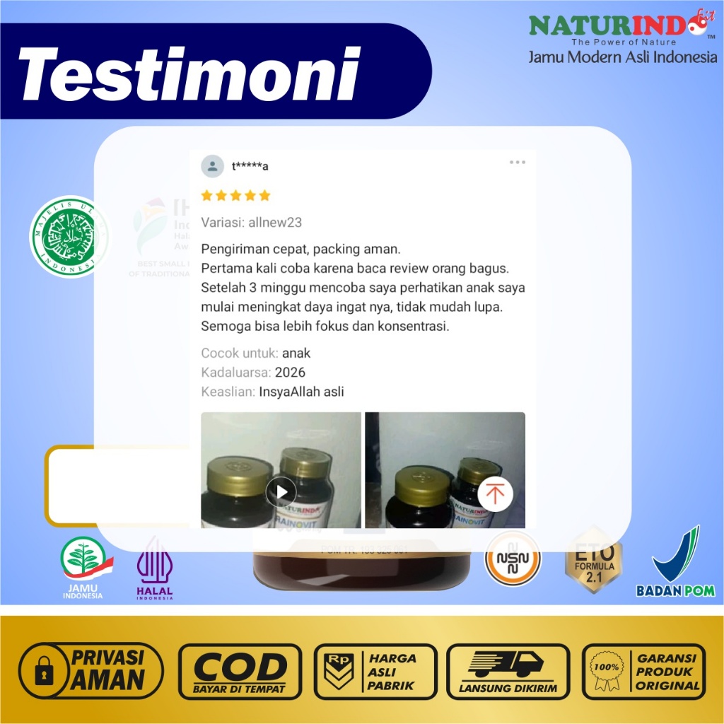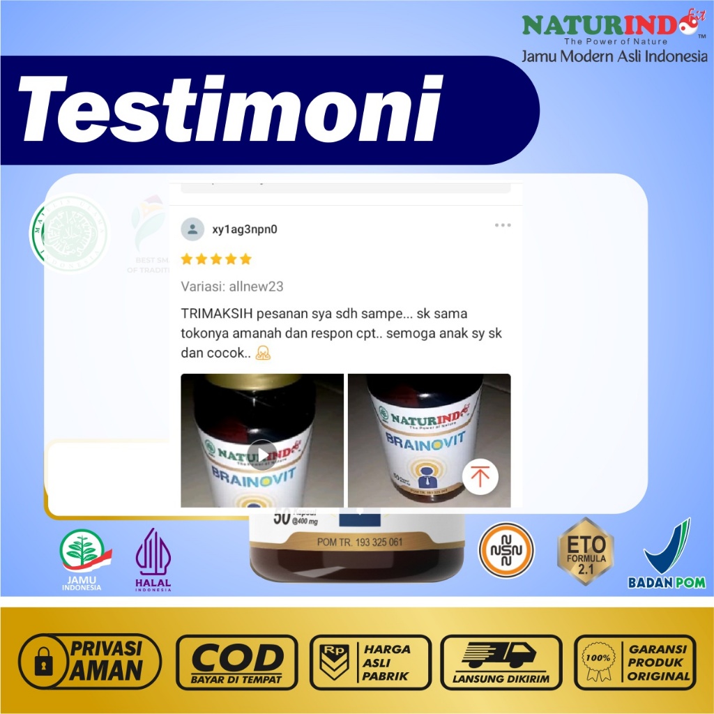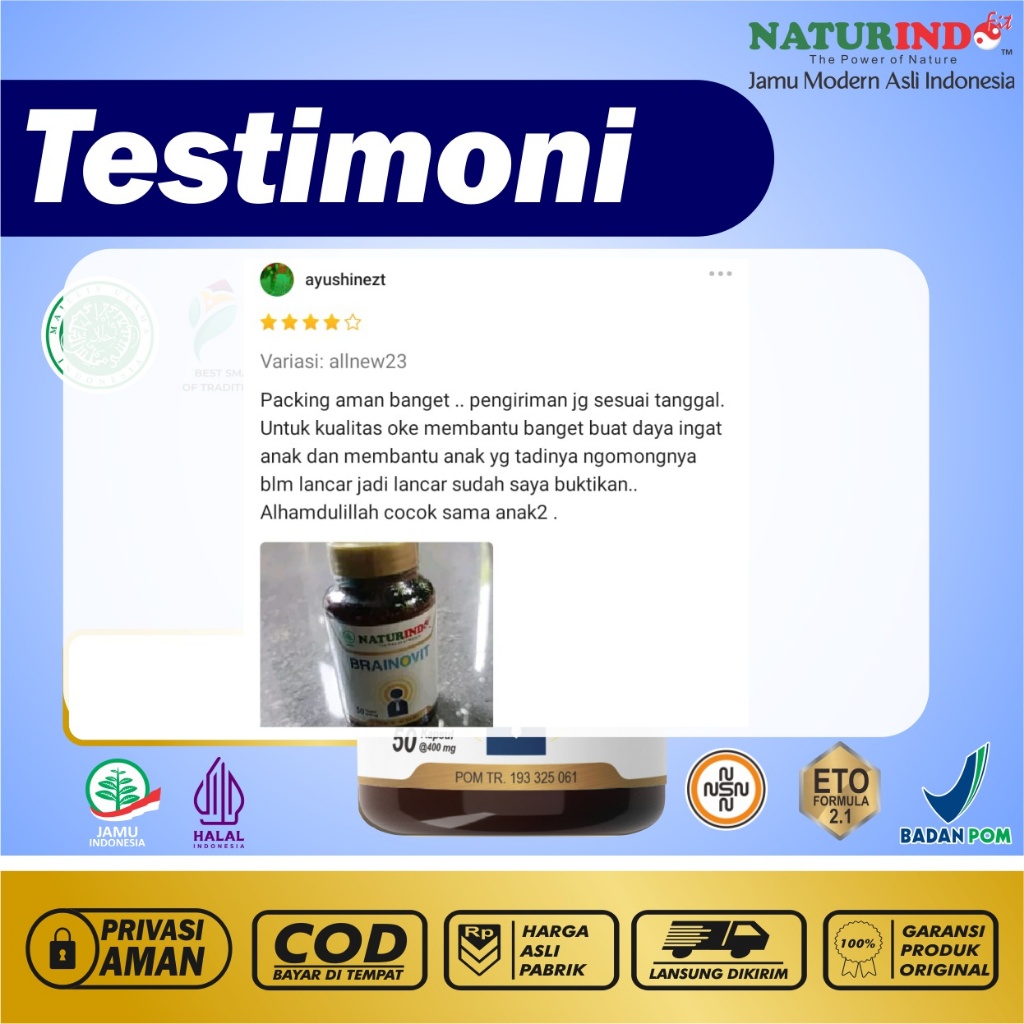 Suplemen Nutrisi Otak Daya Ingat Obat Pintar Alami Vitamin Otak Anak dan Dewasa Brainovit Naturindo