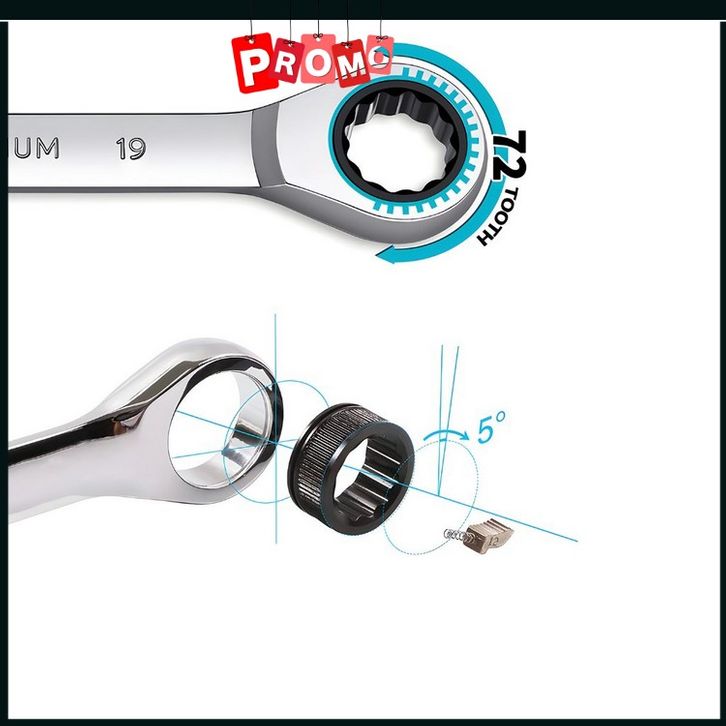 Allefix Kunci Ring Pas Bolak Balik Set 8MM-19MM Chrome Vanadium- 6719