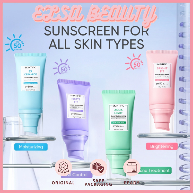 SKINTIFIC UV Shield Sunscreen All-in-1 Series-SPF50+ SPF35 PA++++ Skincare|Matte Fit Serum/Brighte Fit/5X Ceramide Serum