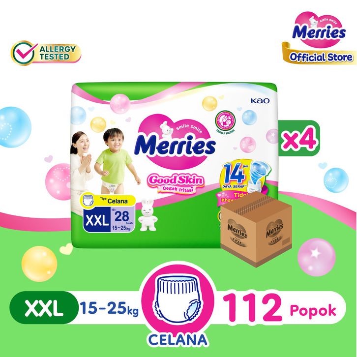 PAMPERS MERRIES PANTS GOOD SKIN POPOK CELANA XXL 28 PCS CARTON POPOK ANAK DIAPERS BAYI MERRIES