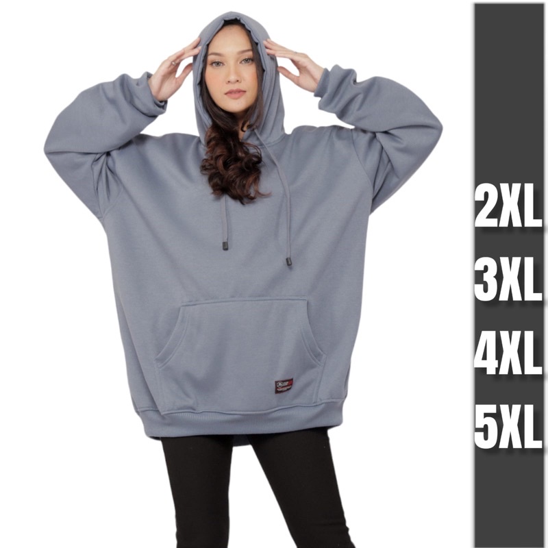 JENAY - Hoodie polos oversize unisex jumbo bigsize XXL XXXL XXXXL XXXXXL pria wanita Denim
