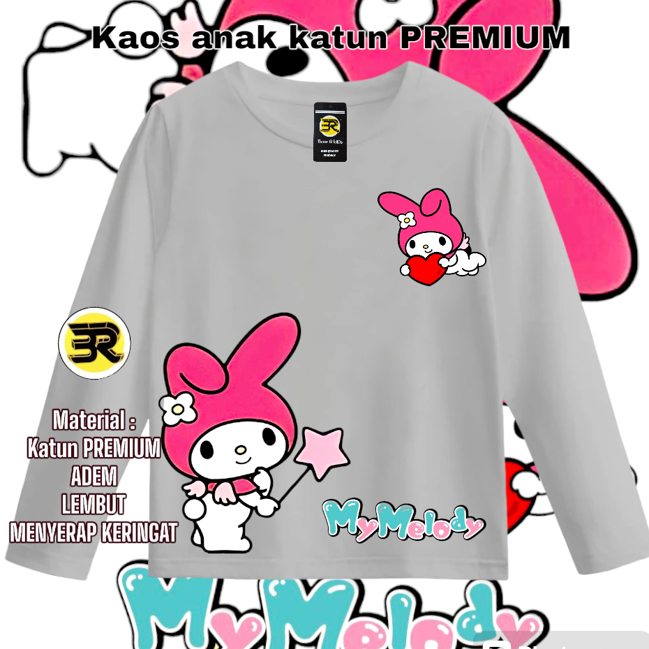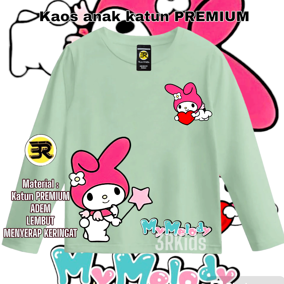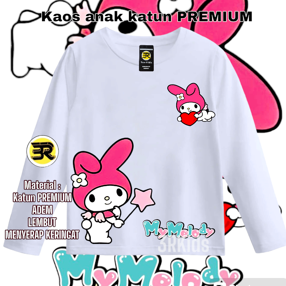 Kaos Anak Perempuan Katun 30s Motif my Melody T-Shirt Lengan PanjangTerbaru 1-10 Tahun