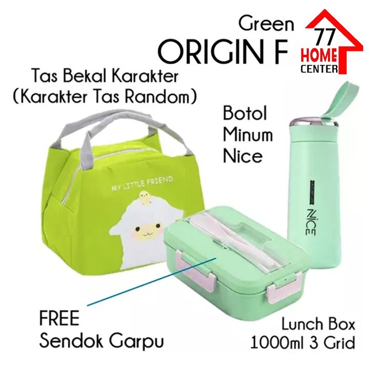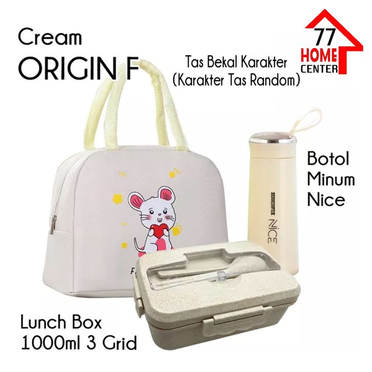 Kotak Makan Anak Anti Tumpah 1000ml 3 Grid Paket Lunch Box Set Botol Minum Kotak Bekal Makan Siang Dengan Tas Bekal