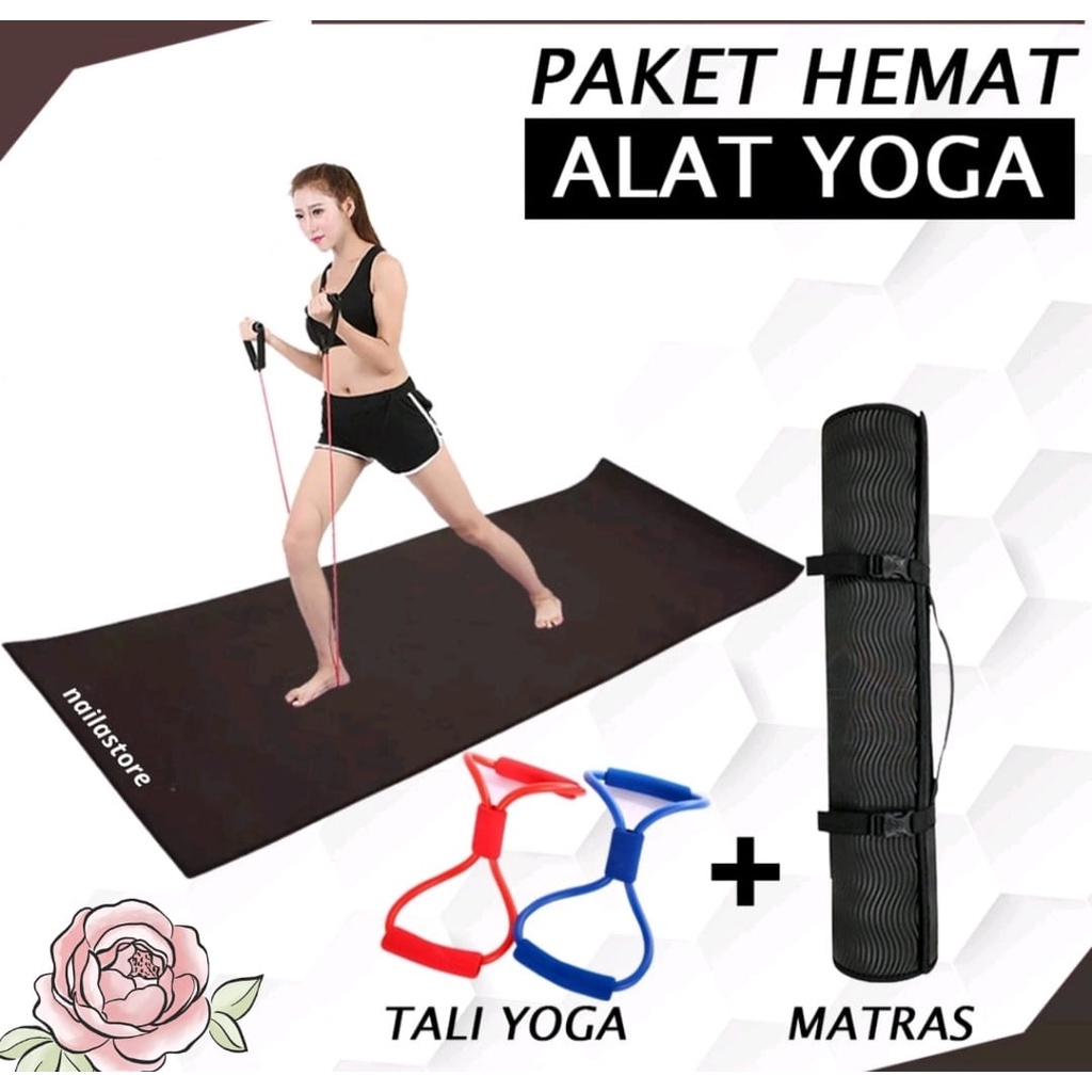 (BEST SELLER) PAKET HEMAT ALAT YOGA MATRAS OLAHRAGA YOGA PLUS TALI YOGA ELASTIS murah BISA