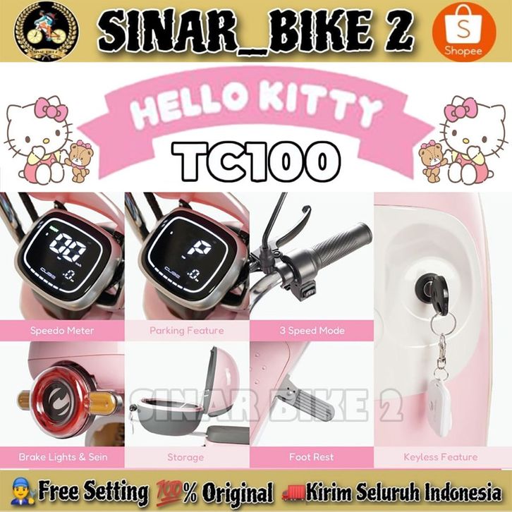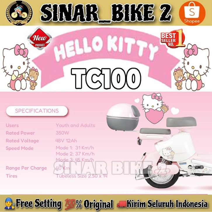Sepeda Listrik ION CUBE TC100 TC 100 Hello Kitty dan Cinnamoroll by Element 350 Watt Electric E Bike