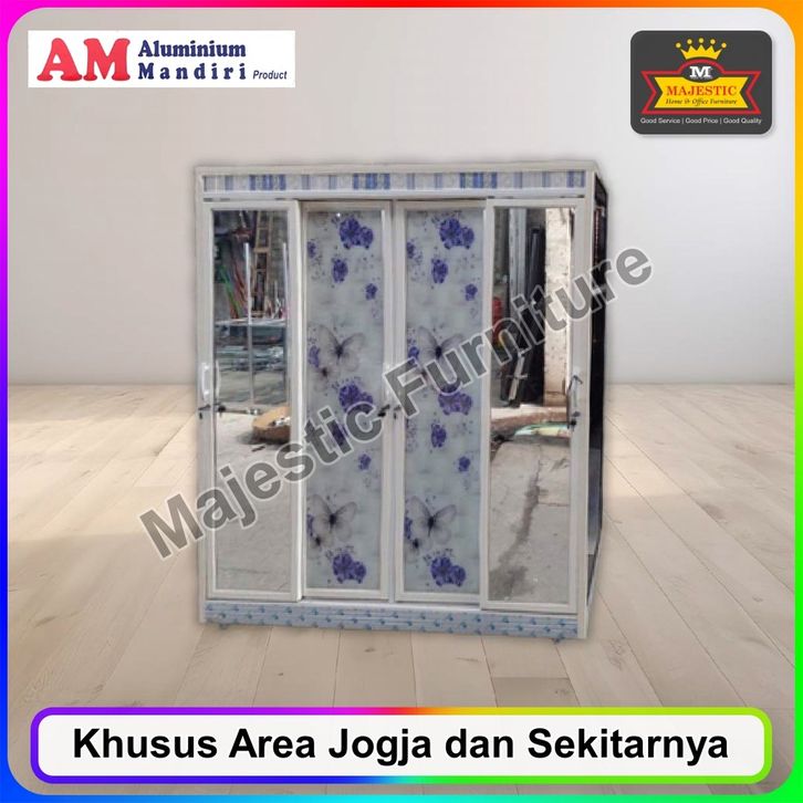 Lemari Pakaian Stainless Alumunium Mandiri Lemari Baju 150 Putih 4 Pintu Sliding Variasi Lukis (Jogj