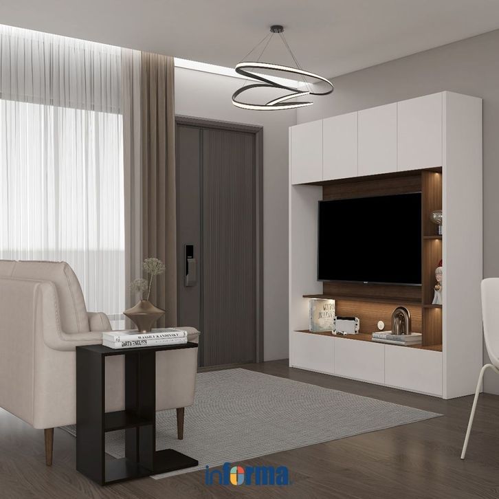 MURAH Informa Iora Set Lemari Tv Entertainment Center - Putih/Cokelat Oak Entertainment Centre Cabinet Meja Rak