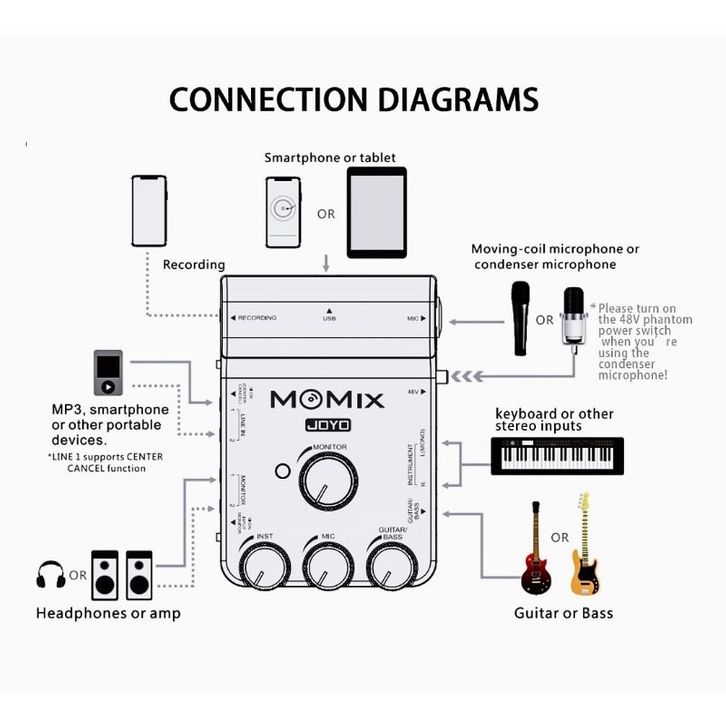 JOYO MOMIX Portable Mixer Audio Soundcard Recording USB Audio Interface
