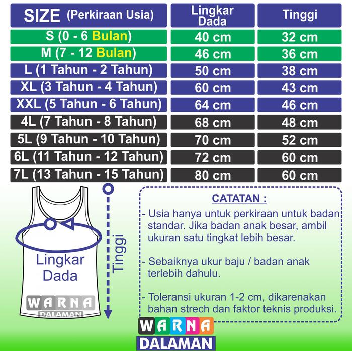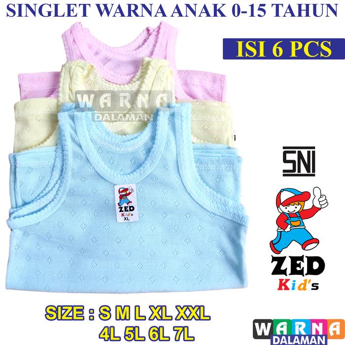 Promo 6 Pcs Singlet SNI Warna Anak Perempuan dan Laki-Laki Usia 0-15