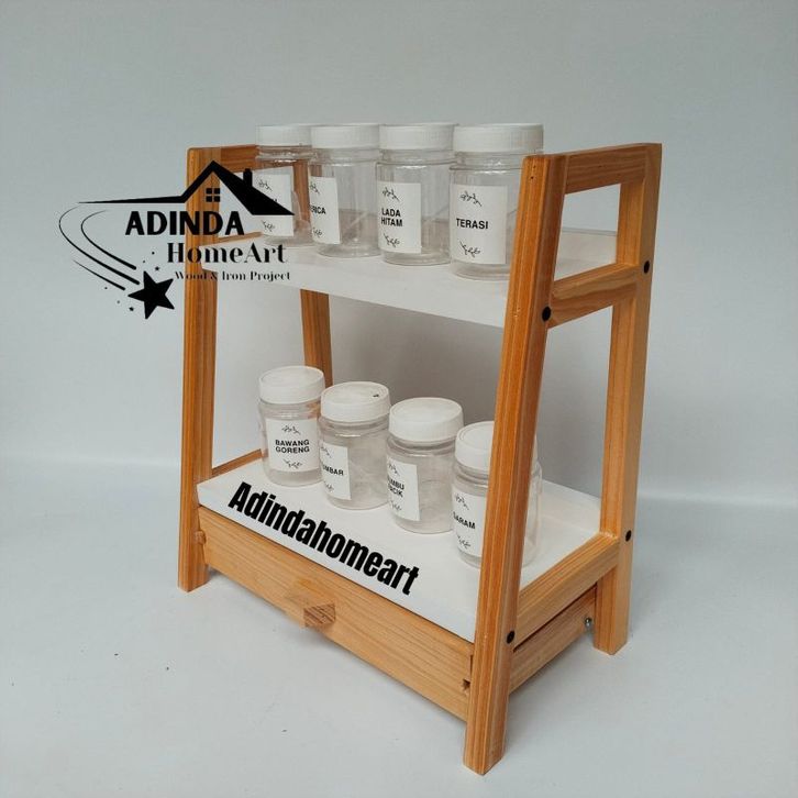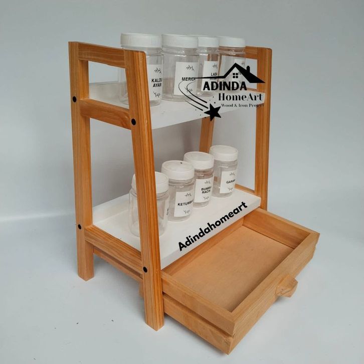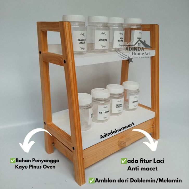 Rak Bumbu Dapur 2 Tingkat Kombinasi Laci Susun 2 Rak Susun Serbaguna