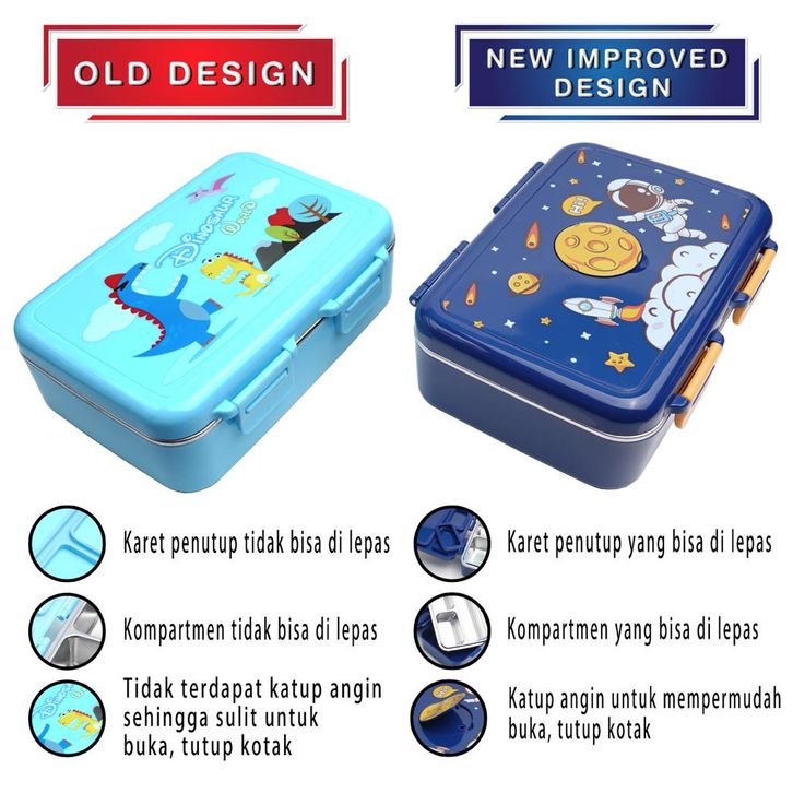 Kotak Makan Anak Anti Tumpah Stainless 3 Sekat Lunch Box Set Kotak Bekal Makan Anak Sekolah Terbaru Best Seller