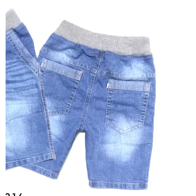 Celana Jeans Anak Pendek 1-6 tahun Stretch - Celana Anak Jeans Pendek Stretch Rib Biru Muda Osh