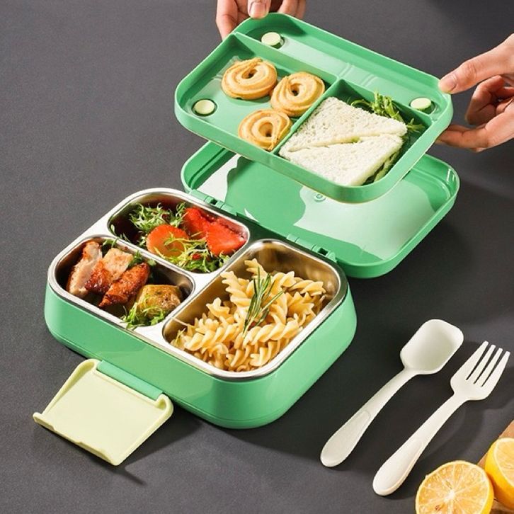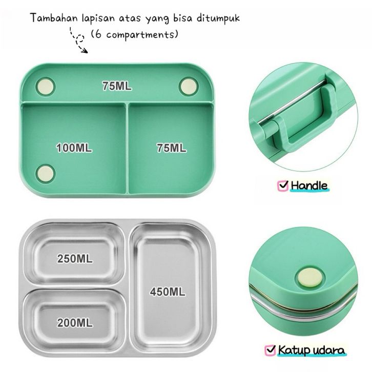 Kotak Makan Anak Anti Tumpah Stainless Steel 2 Susun Lunch Box Set Kotak Makan Bento Anak Premium BPA FREE