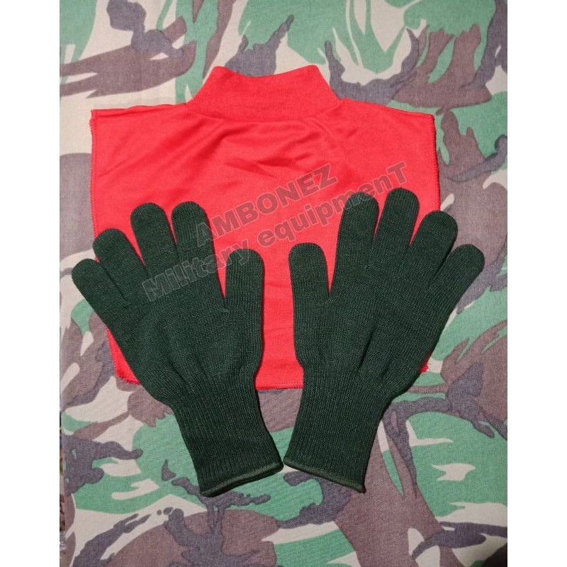 SARUNG TANGAN RAJUT HIJAU + SYAL MERAH UPACARA TNI