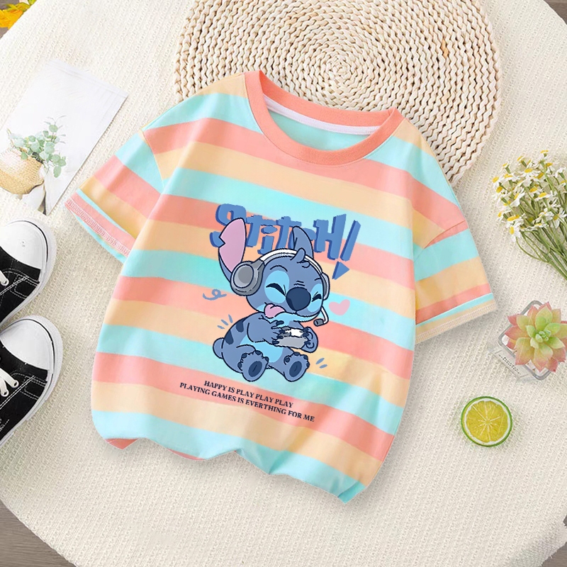 Dailyway Baju Kaos Atasan Anak Perempuan T-shirt Terbaru Import 2-12 Tahun/Baju Kaos Anak Cetak jahitan kartun biru/