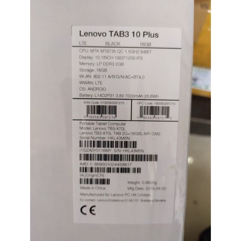 Tablet Lenovo Tab 3 10 plus LTE 4GB Ram 2GB INTERNAL 16GB masih segel dus