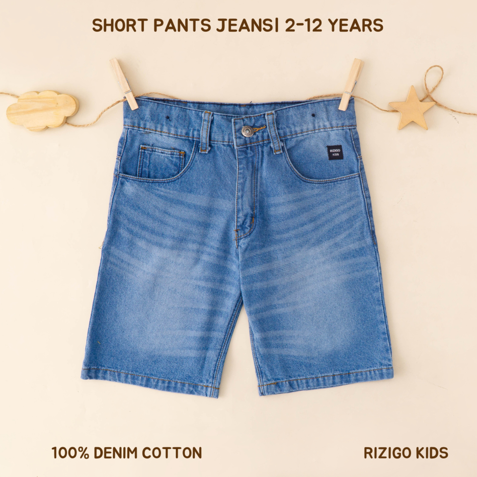 Rizigo Kids Celana Jeans Anak BioBlue Bleach Scraf Whisker - Celana Pendek Jeans Anak Laki Perempuan