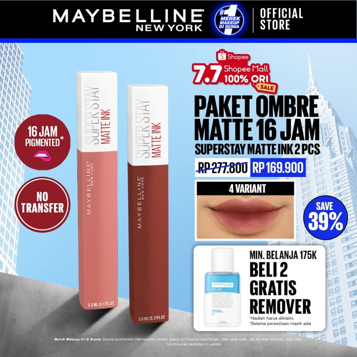 [Mall] MAYBELLINE OFFICIAL STORE Ink 2 Pcs Ombre Set Tahan 12 Jam Waterproof Lipstick Lipcream Lipstik Maybelline Matte