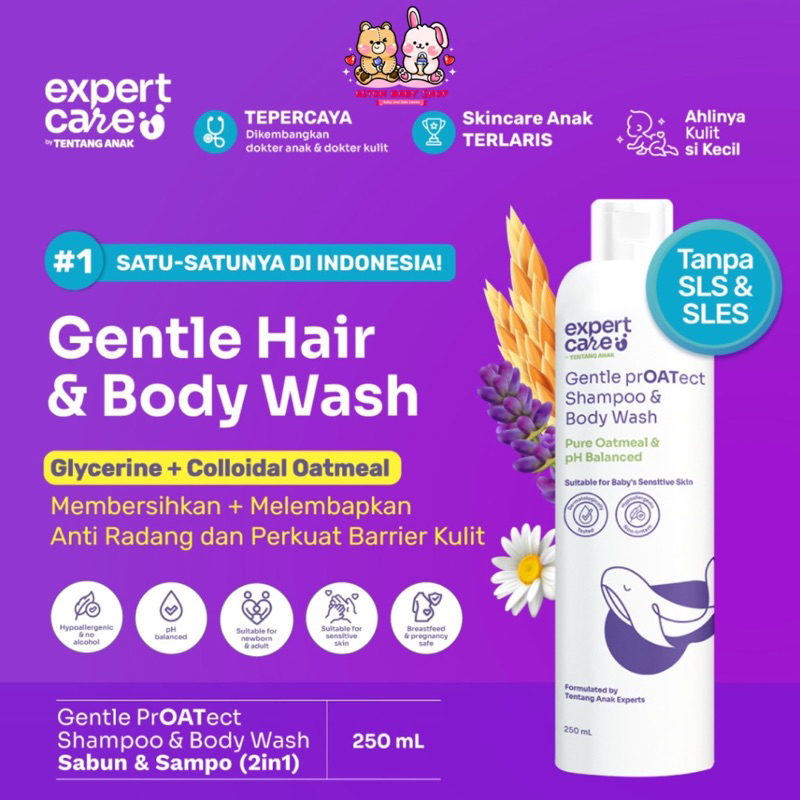 Expert Care 2in1 Body Wash & Shampoo 250 ml & 380 ml - Expert Care Gentle Hair & Body Wash Sabun Shampo Bayi & Anak