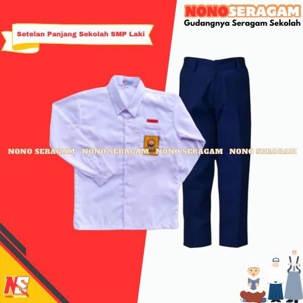 Setelan Set Seragam Sekolah SMP LAKI BAJU PANJANG Putih CELANA PANJANG Biru Cowok - Baju SMP Panjang