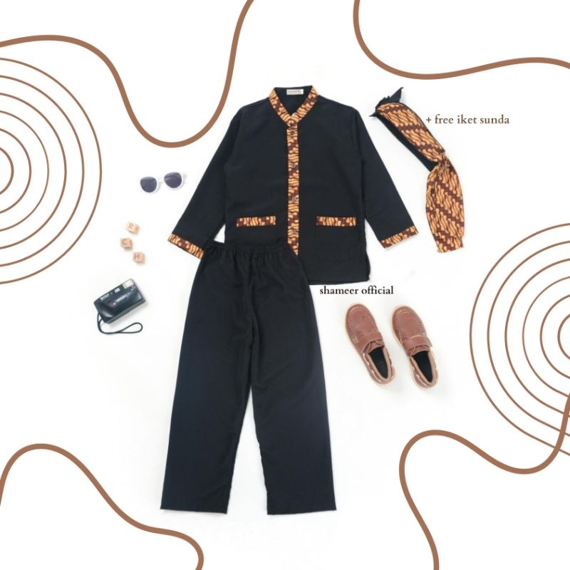 Setelan Baju Adat Pangsi Anak Free Iket Sunda