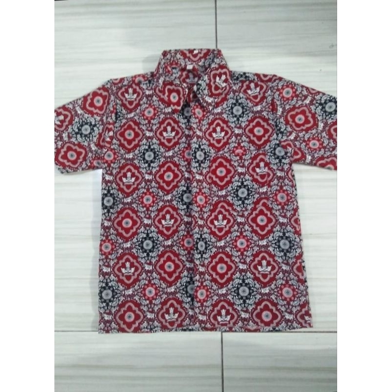 Baju Seragam Batik SD Negeri Tunas Harapan Bangsa Nasional Merah Lengan Pendek Putera Puteri