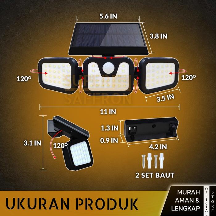 Lampu Dinding Outdoor Solar Cell Sensor Gerak 72 LED 1000 Lumens Cahaya Putih