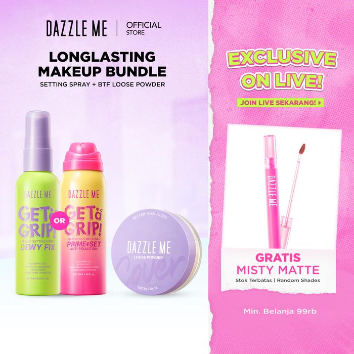 [BUNDLE 2PCS] DAZZLE ME Better Than Filter Longlasting Bundle Setting Spray Loose Powder Bedak Tabur Ringan Tahan Lama