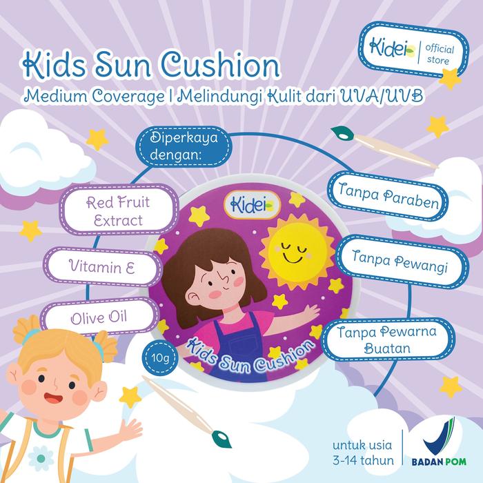 KIDEI Kids Sun Cushion 10g Bedak Foundation Khusus Anak dengan Vitamin E dan Olive Oil - Wajah Sunblock Concealer