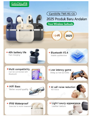 [Star]TWS RS-C6 Headset Bluetooth V5.4 earphone yang lucu Kualitas suara HIFI nirkabel yang tinggi Tahan air Ipx6