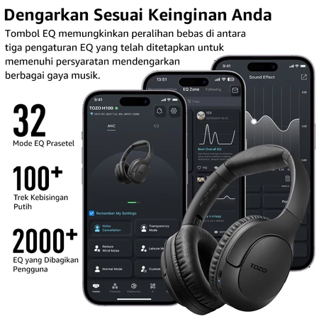 Tozo H100 Over Ear Headphone Wireless ENC Clear Calls Deep Bass Foldable Wireless Headset 70H Playtime