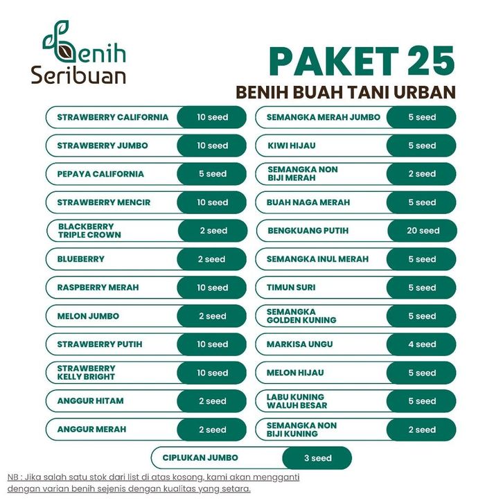 Benih Benih Seribuan - Paket 25 Macam Bibit Buah Buahan Lengkap
