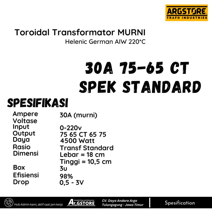 Trafo toroid donat 30A 75V CT Helenic German