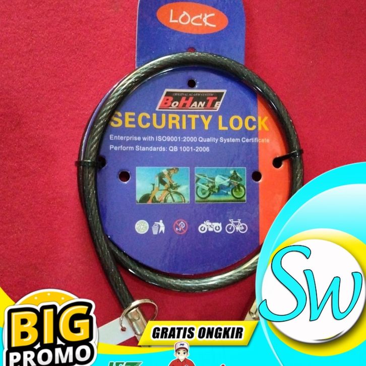 BOHANTE SECURITY LOCK KAWAT BAJA KUNCI GEMBOK ANTI MALING MOTOR DAN SEPEDA UNIVERSAL KUNCI PENGAMAN SERBAGUNA SOLID KOKO