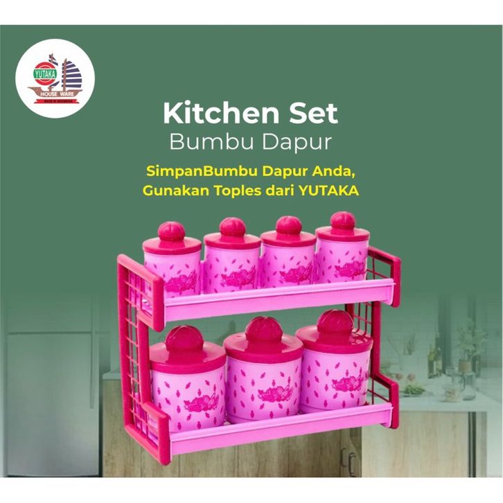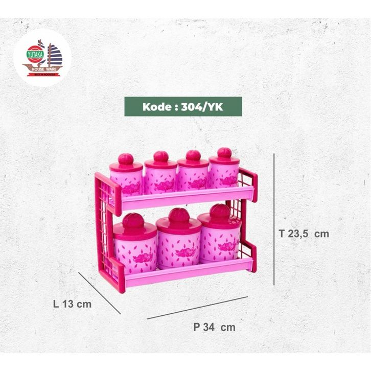 Tempat Bumbu Rak 2 Tingkat Pink Isi 7 Toples + Sendok Estetik & Fungsional Tempat Bumbu Dapur Toples Bumbu Dapur 304/YK