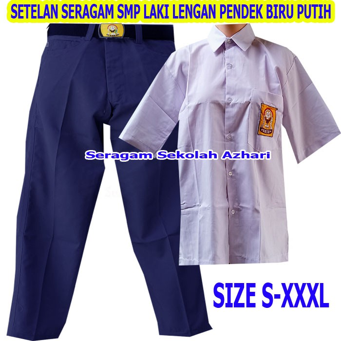 SETELAN SERAGAM SMP LAKI LAKI BIRU PUTIH LENGAN PENDEK-SERAGAM SMP COWOK-SERAGAM SEKOLAH SMP LAKI LAKI-SERAGAM SEKOLAH S