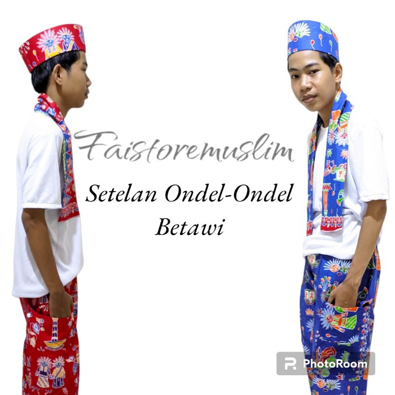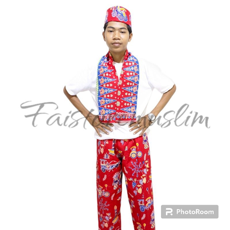 Setelan Celana ondel-ondel Betawi Dapat Celana,Peci,Syall Anak 1-15 tahun
