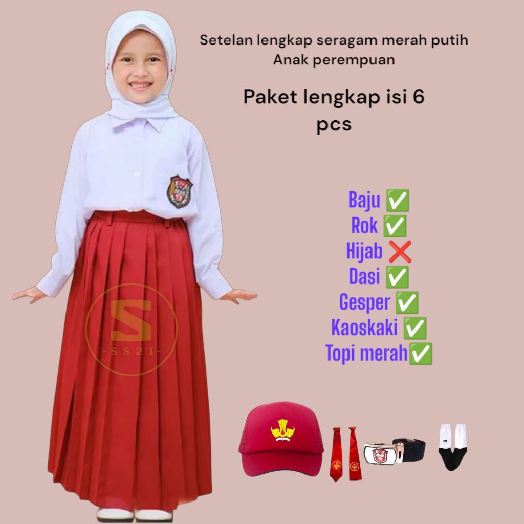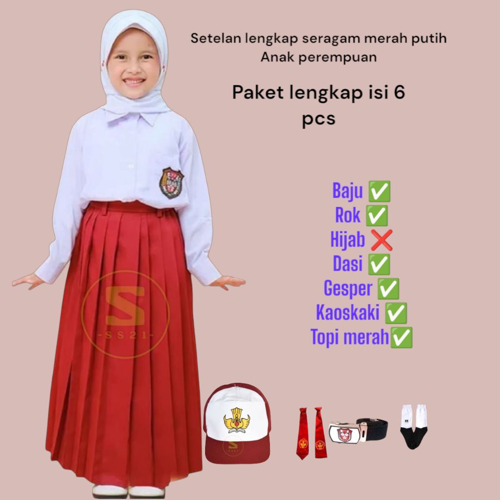setelan seragam merah putih anak perempuan berhijab / setelan seragam / setelan merah putih / setelan baju sekolah anak