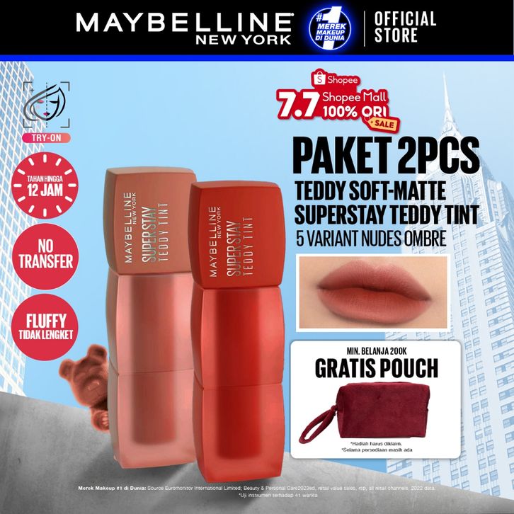 [Mall] MAYBELLINE OFFICIAL STORE OMBRE Superstay Teddy Tint Nudes 2 Pcs Lipstick Lipcream Lipstik Maybelline Matte