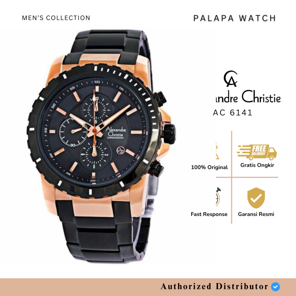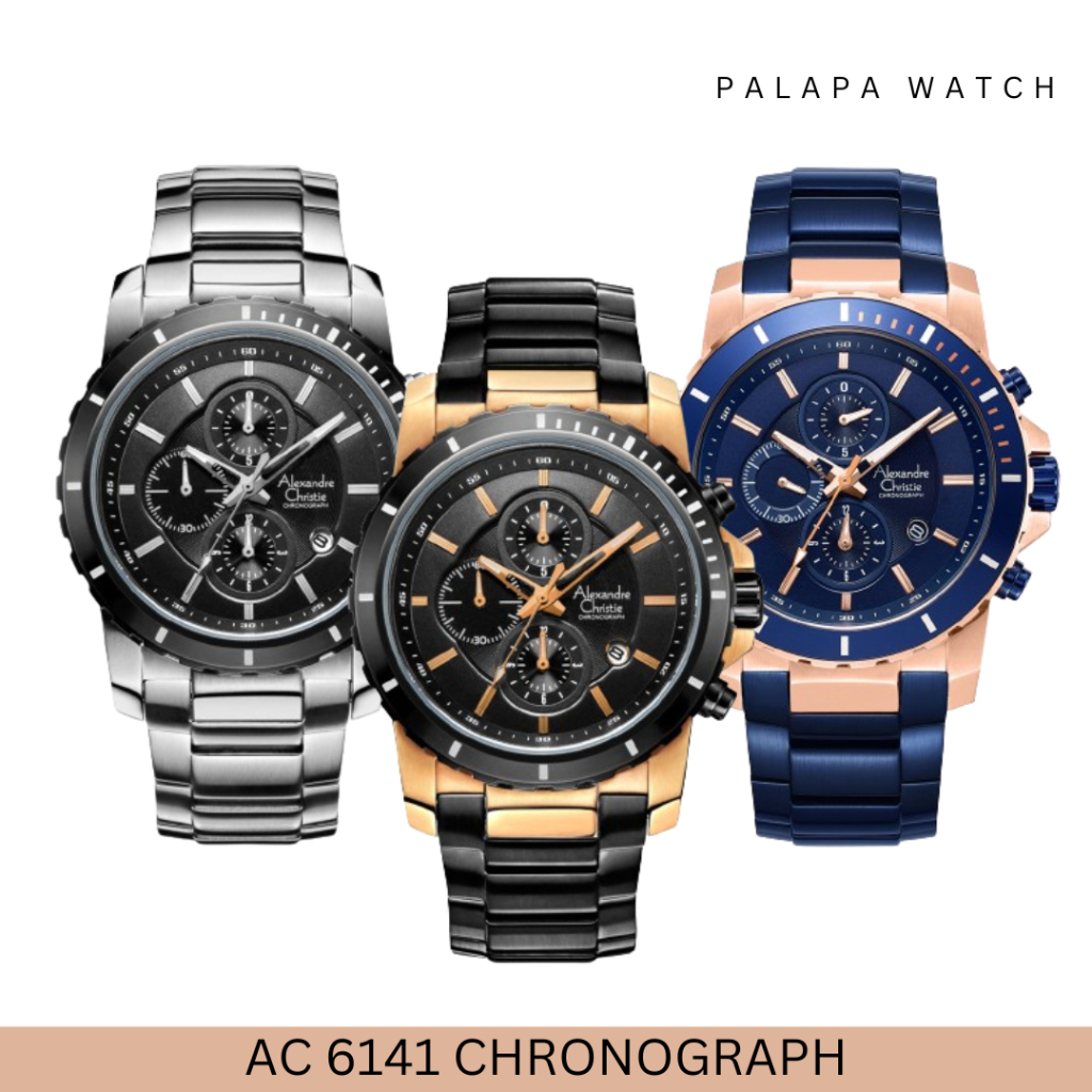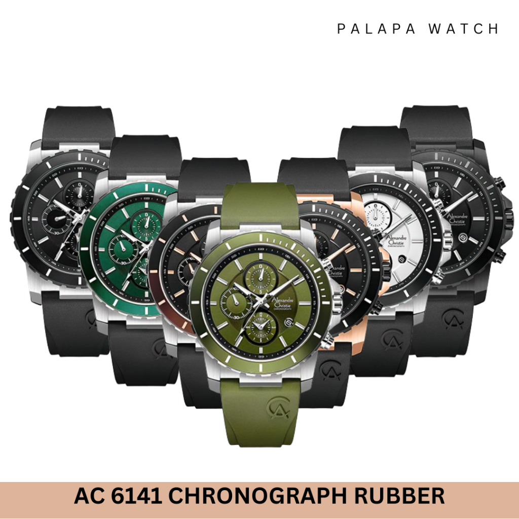 JAM TANGAN PRIA ALEXANDRE CHRISTIE AC 6141 CHRONOGRAPH STAINLESS RUBBER LEATHER ORIGINAL CEWEK CASUAL FORMAL BRANDED