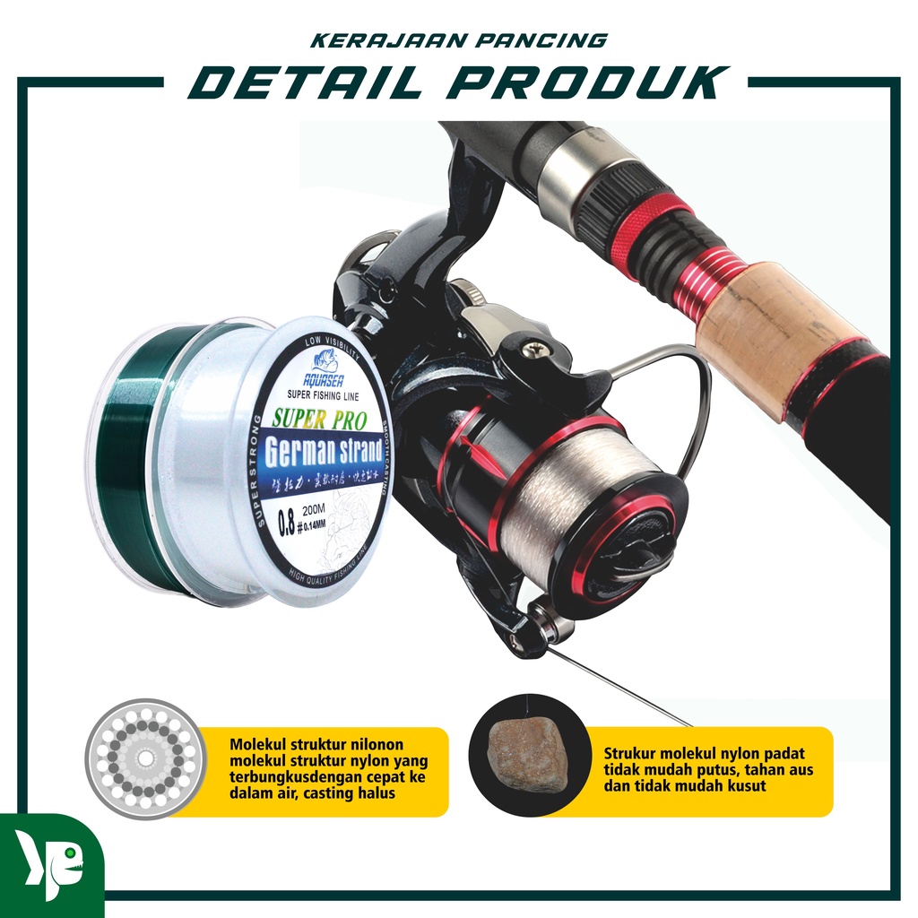 KERAJAAN PANCING - Senar Pancing Germany Aquasea Panjang 200Meter 2Warna Nilon Senar Set Peralatan Pancing Bahan Nilon T