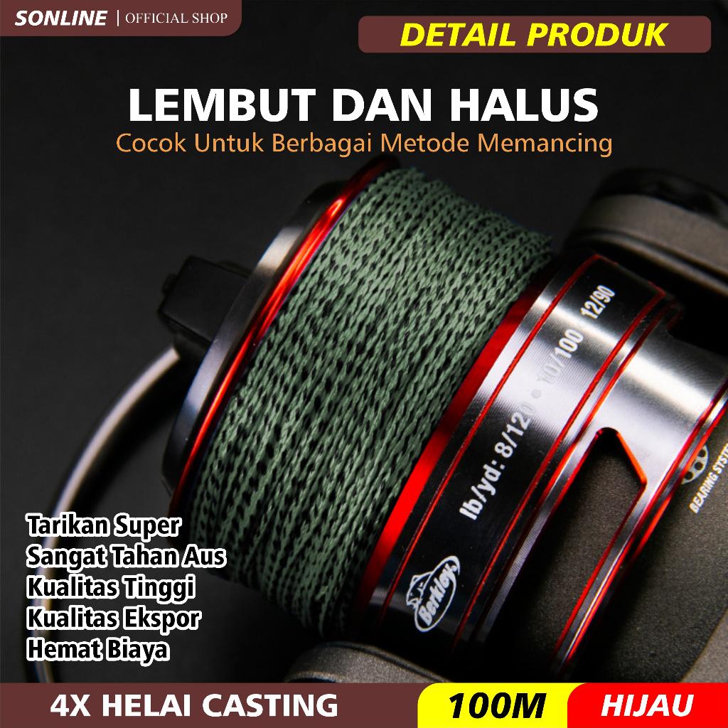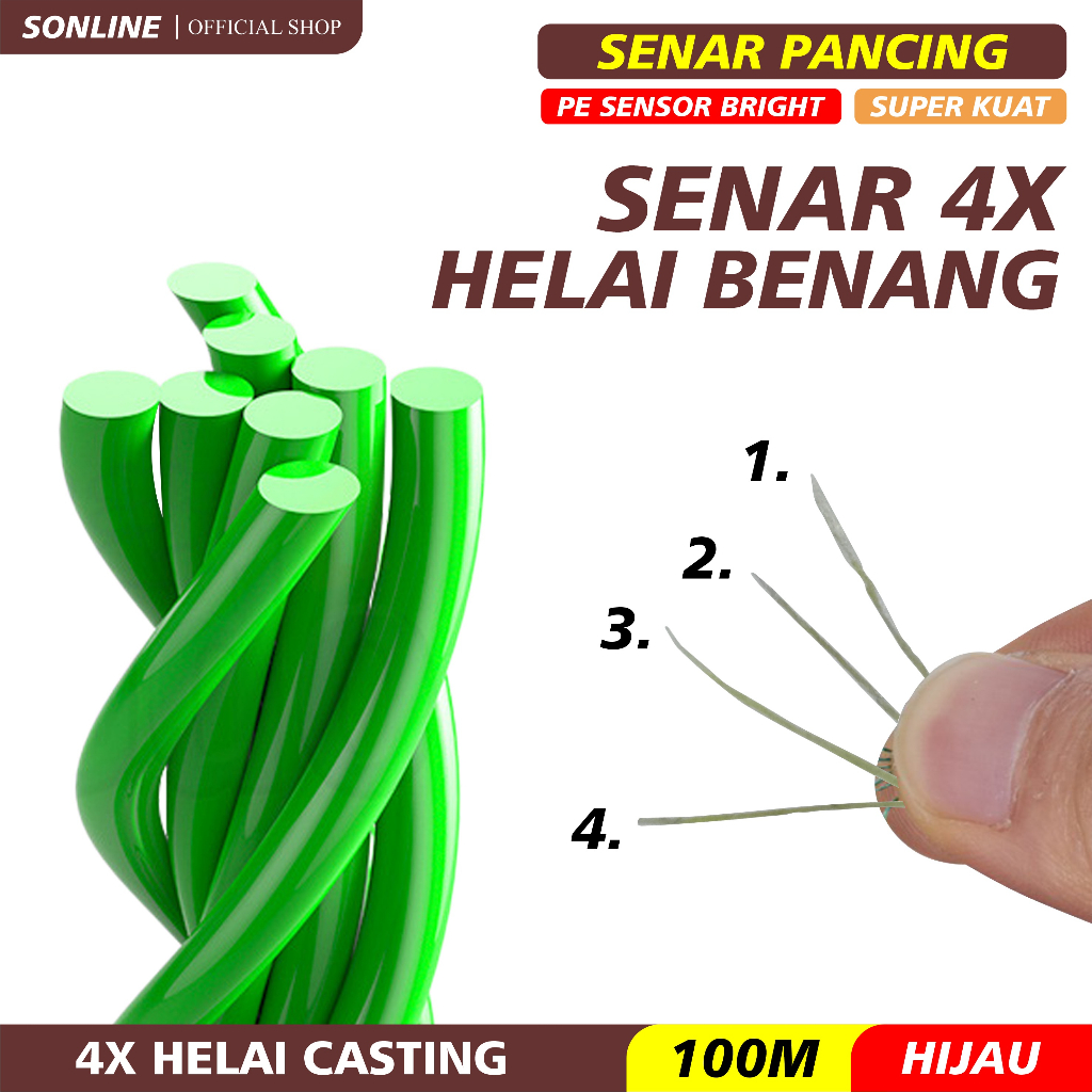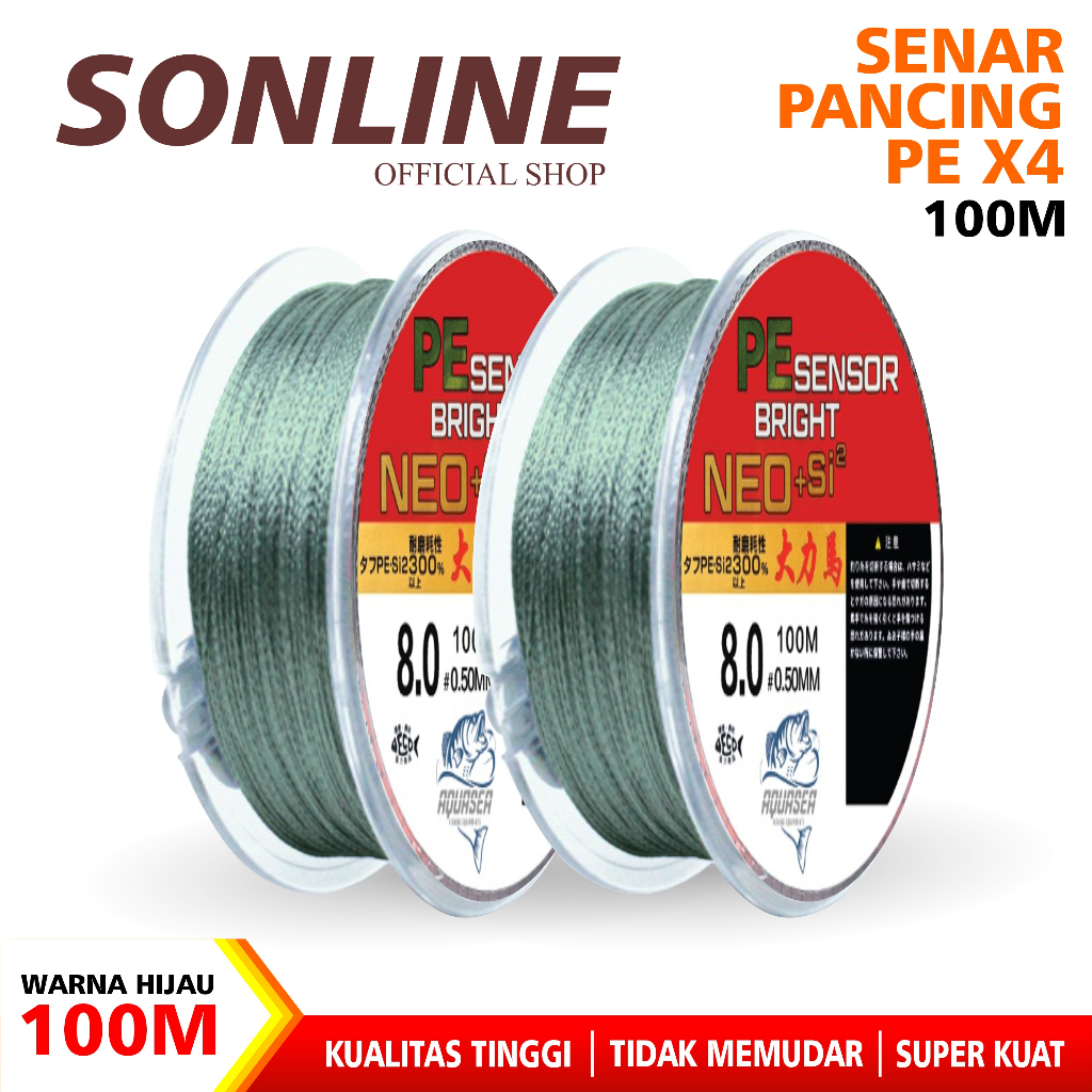 SONLINE - Tali Pancing 100m Senar Pancing PE Sensor Bright Warna Hijau Sensor NEO+si2 Jepang Senar Pancing 100m Super Ku