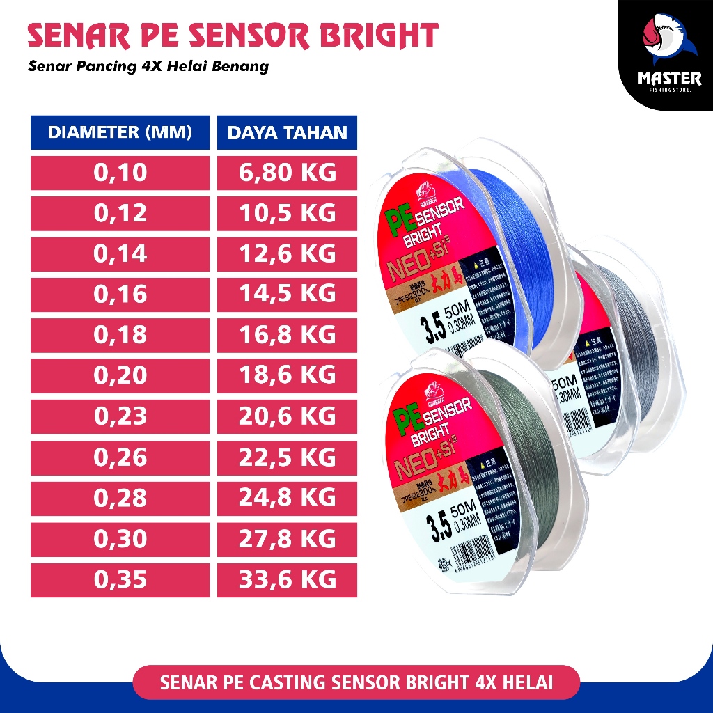 MFS - Tali Pancing 50m Senar Pancing PE Sensor Bright NEO+si 3 Warna Jepang SuperKuat murah